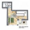 Urcand pe scara, ajungi la dormitor (20mp) care este mobilat cu un pat confortabil si dulapuri incapatoare. La nivelul superior, al dormitorului, ai baia proprie cu cada.