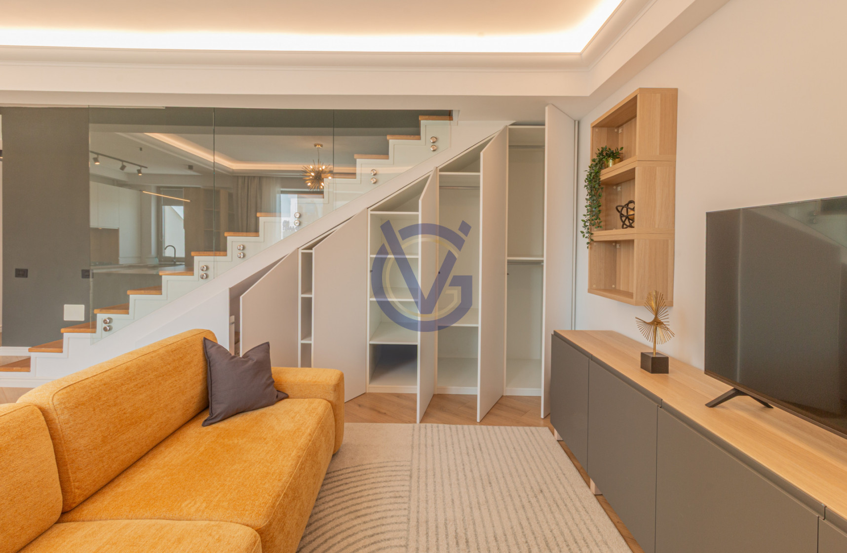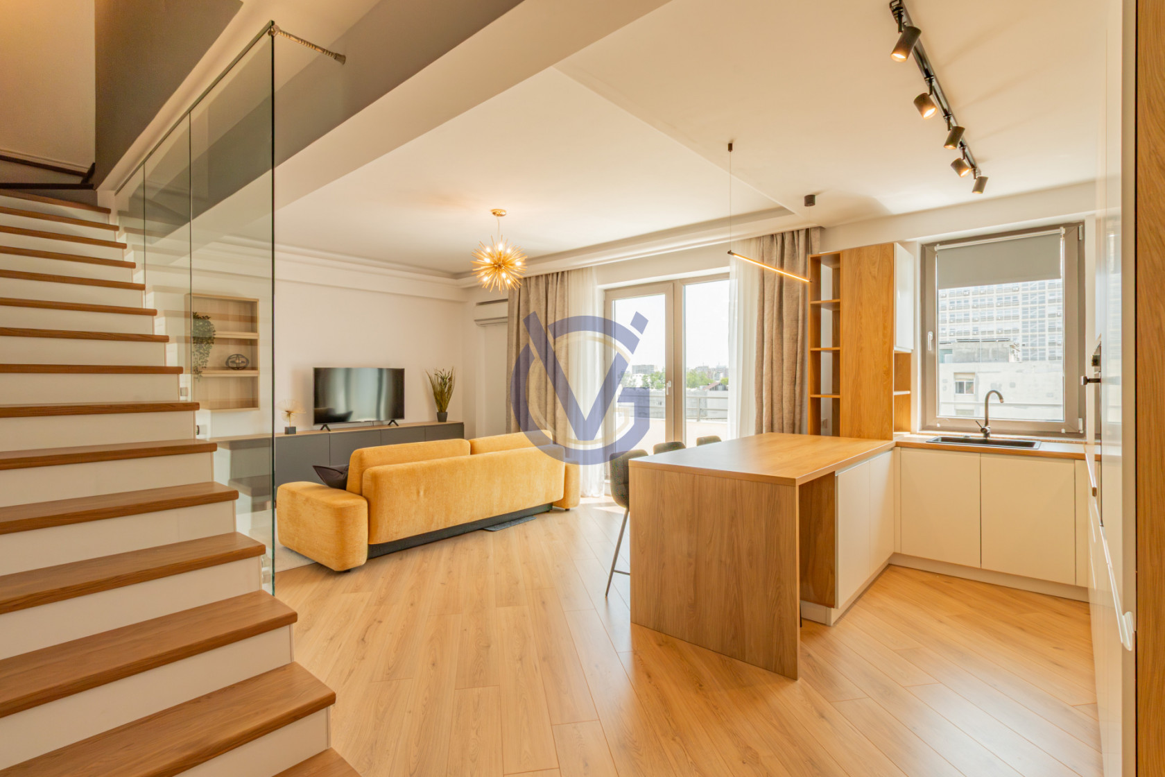 Ai la dispozitia ta cel mai spatios apartament cu 2 camere de pe Barbu Vacarescu: 70mp, cu o configuratie duplex, inedita! Orientarea este Sud, asadar vei avea lumina intreaga zi, pe tot parcursul anului.