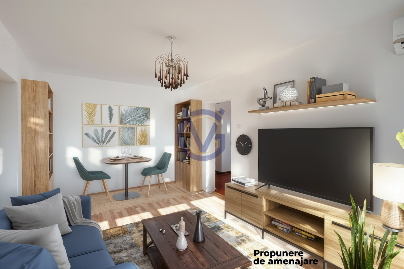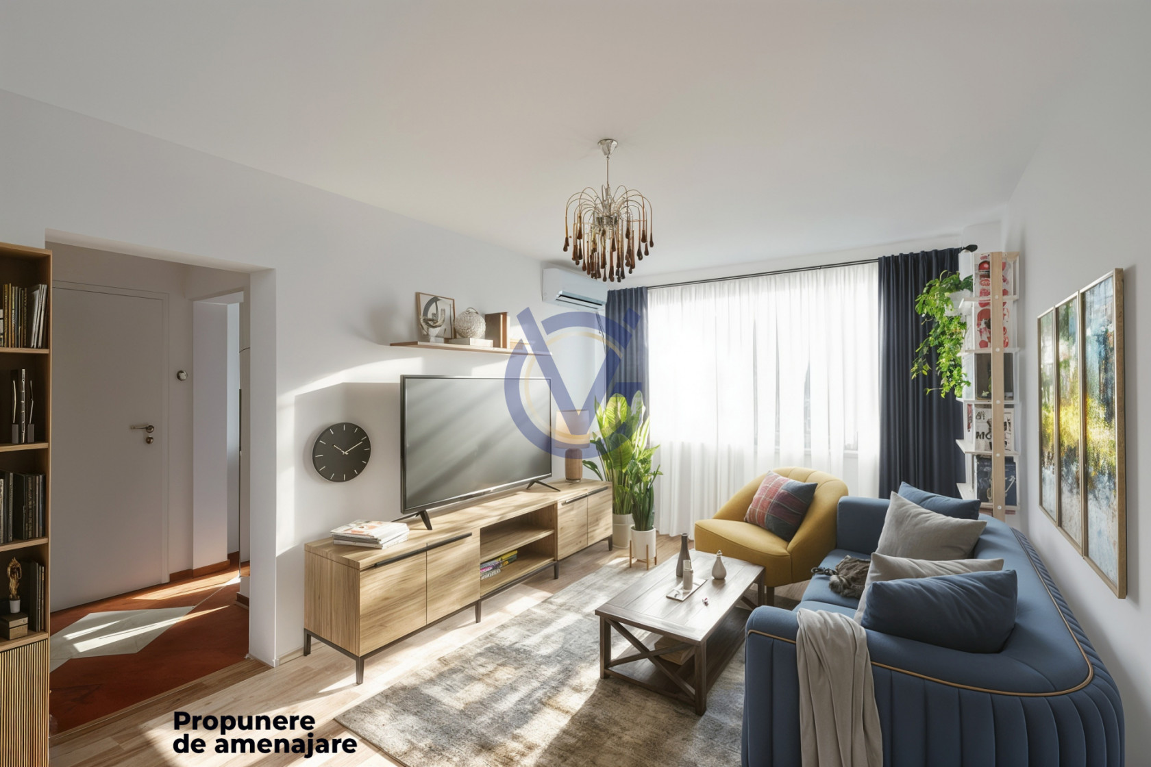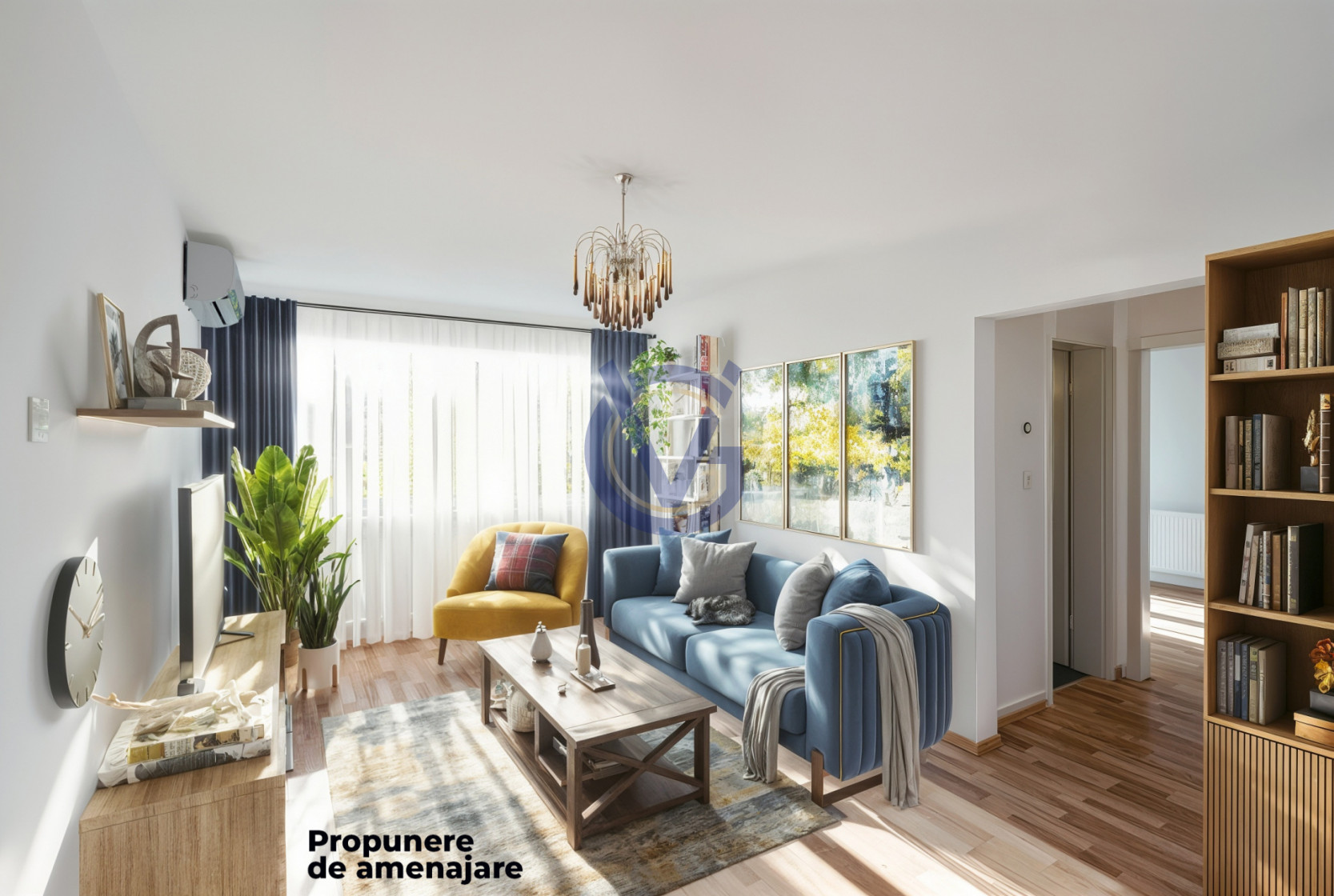 Camerele au suprafetele de 16.64 si 11.65mp. Loggia inchisa este suficient de spatioasa (3,7mp) pentru a-ti putea amenaja acolo un mic birou, sau o zona verde cu plante, numai buna pentru savurat cafeaua de dimineata. Un beneficiu important pentru oricine ar locui acolo, sunt cele doua spatii de depozitare, atat de importante si utile in orice casa, iar investitia in renovare este minima, deoarece peretii sunt intr-o stare foarte buna. Pentru a-ti face o idee de cum poti amenaja apartamentul, te invit sa vezi planul si propunerile de mobilare generate pe calculator.