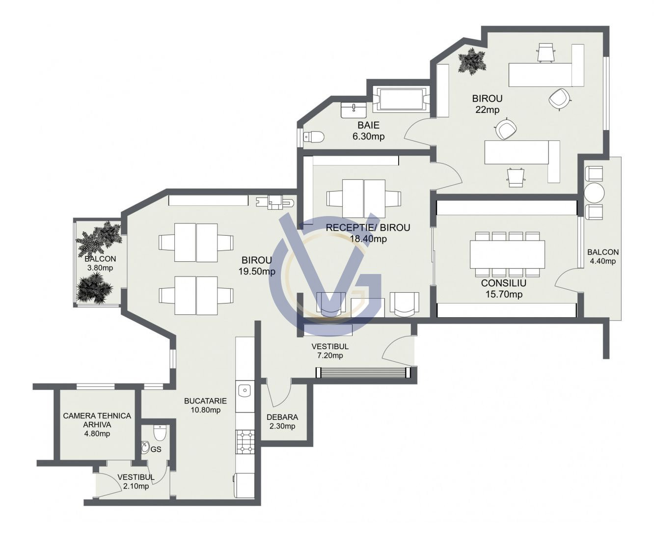In cazul in care esti in cautarea unui spatiu pentru birou, asa cum am spus mai sus, tuturor le va fi usor sa ajunga la tine. Nu exista o locatie “mai centrala” decat aceasta. Configurarea apartamentului iti permite atat posturi de lucru open space, cat si o sala de intruniri si birou privat. Te rog priveste schita pe care am alcatuit-o, ca sa-ti faci o idee 😉