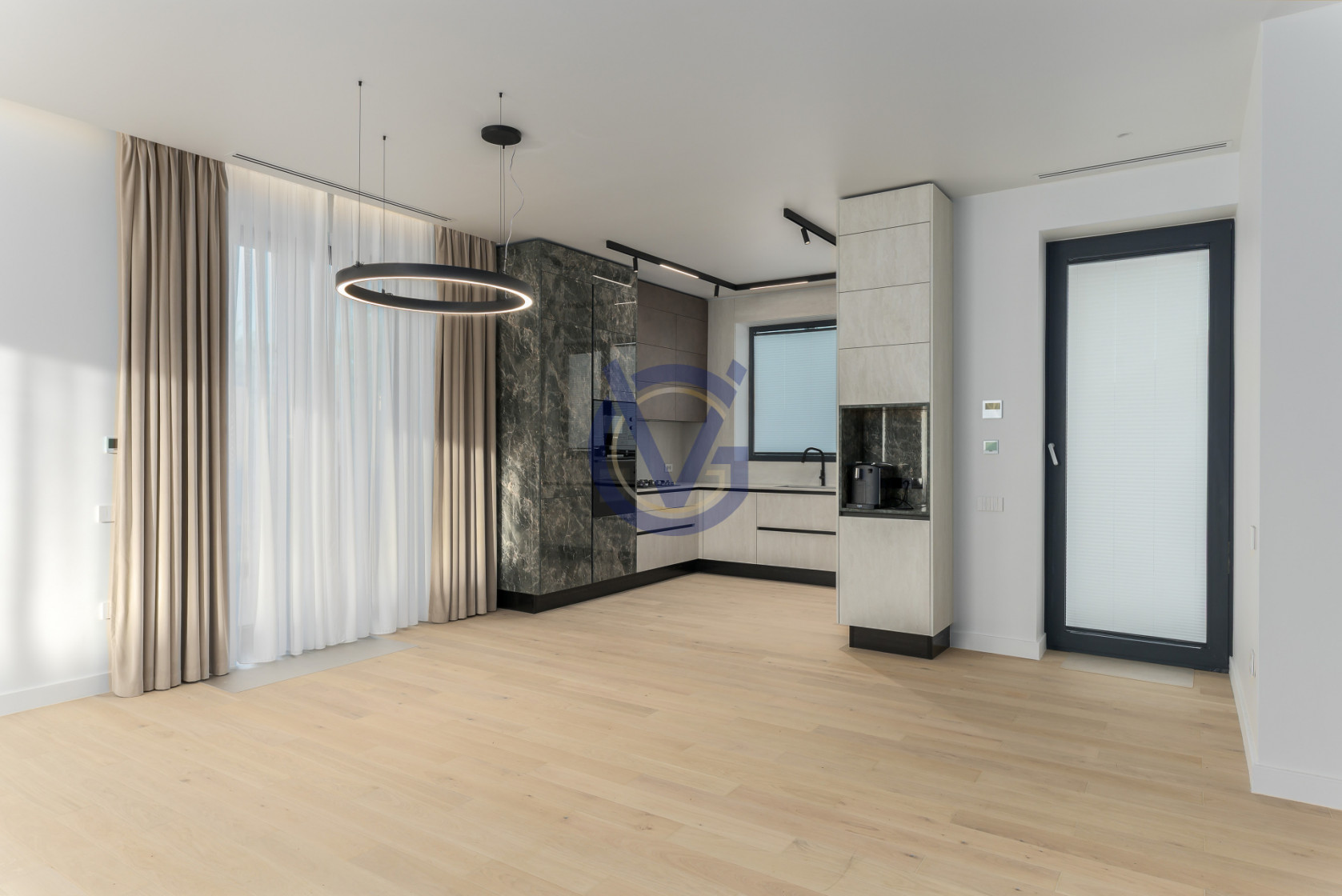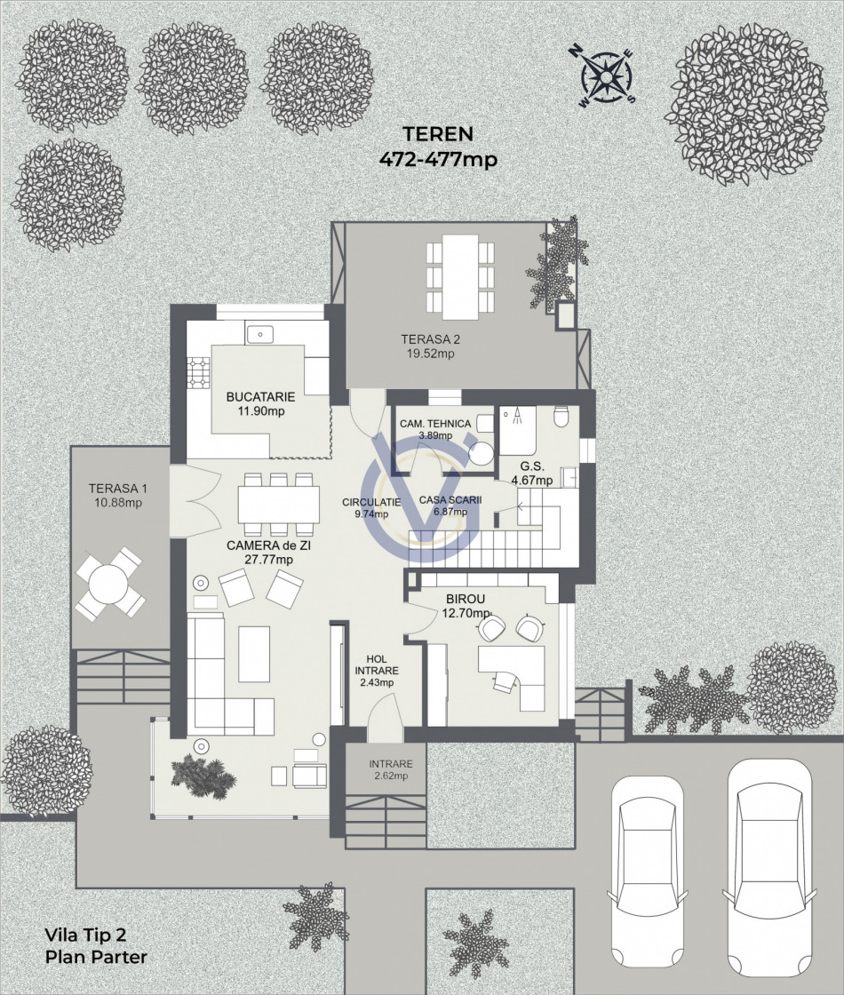 Parterul vilei, cu suprafață utilă de 115 mp (din care 82 mp util locuibili și 33mp terase), este destinat zonei de zi și cuprinde spații generoase, cu suprafețe vitrate imense, prin care te bucuri de peisajul grădinii tale: