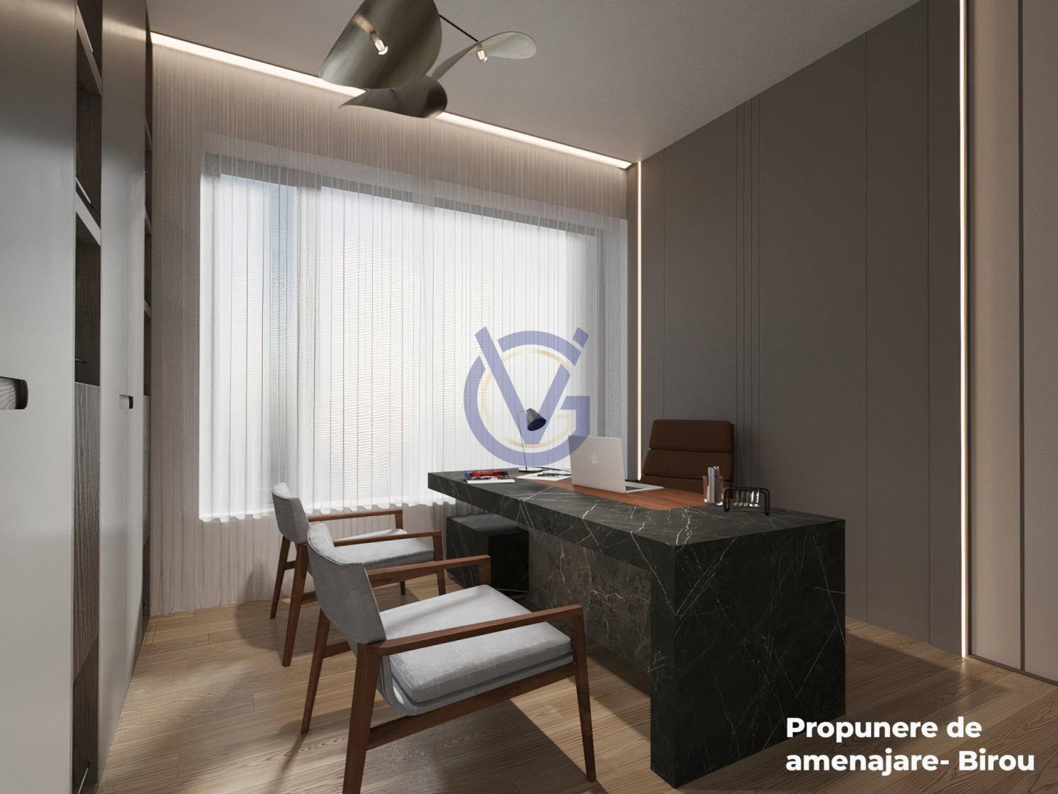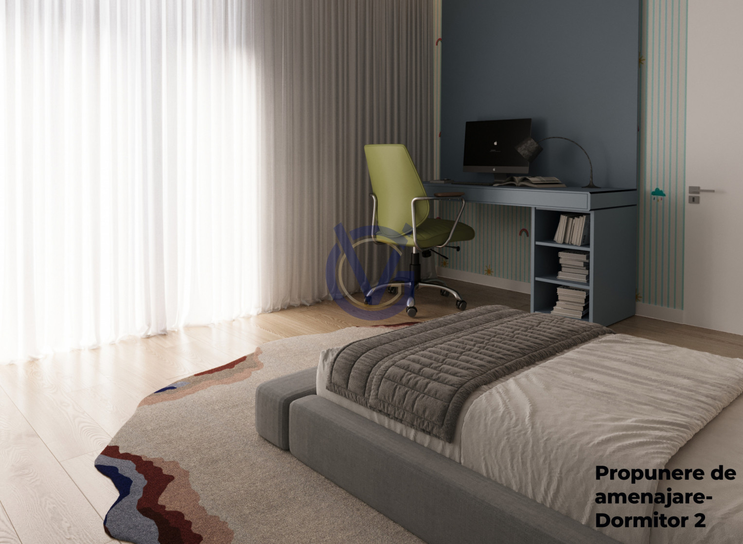 • O cameră versatilă de 12.75mp: Dacă ți-ai dorit vreodată un birou acasă, sau ai părinții care locuiesc cu tine, acest spațiu capătă destinația pe care vrei să i-o oferi. În proximitate se află o baie completă cu duș, de 5mp, care deservește musafirii sau acest dormitor de la parter.