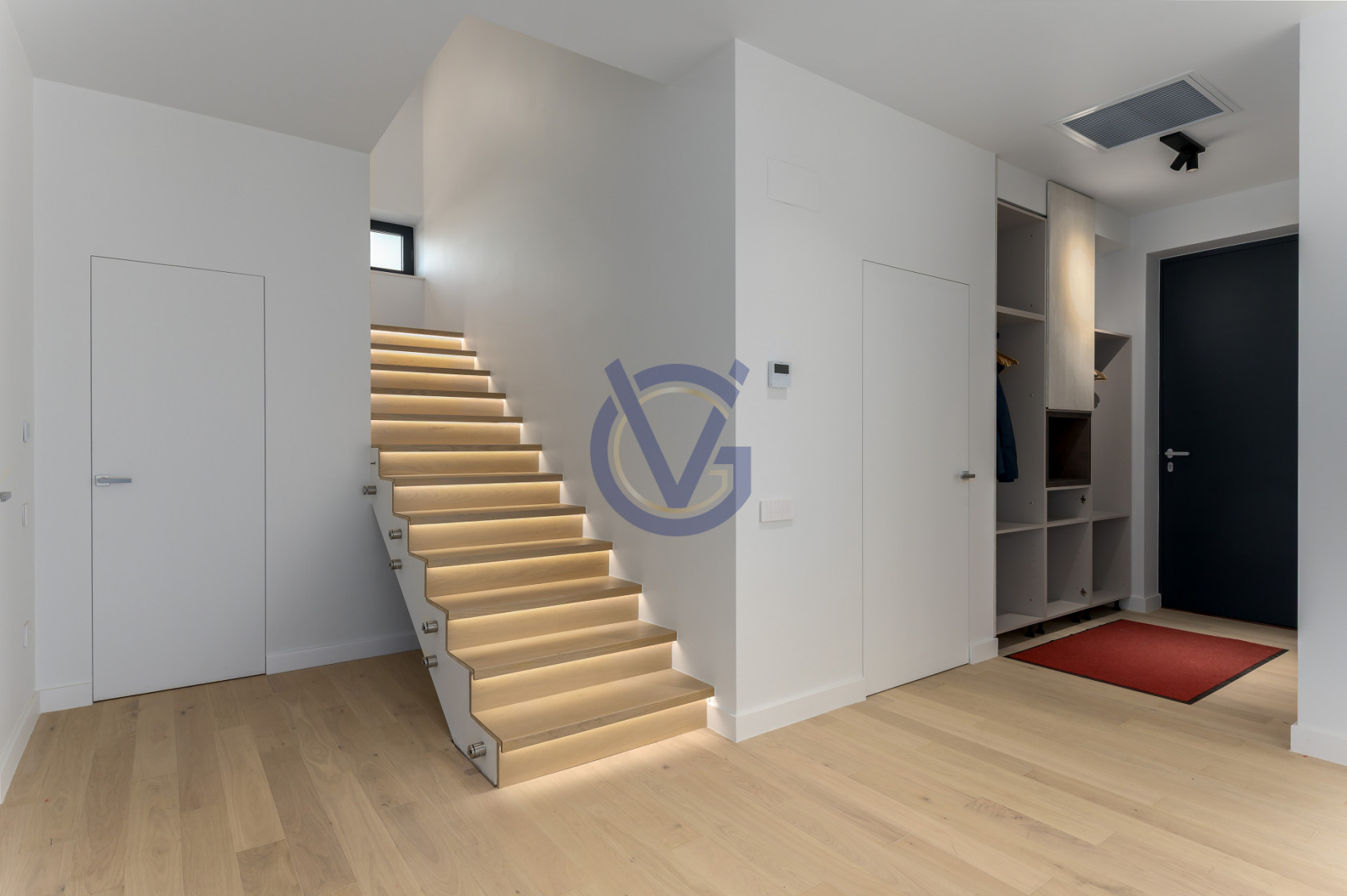 Sunt doar șase vile de acest tip, proiectate într-un stil modern și rafinat. Pe lângă proporțiile armonioase, spațiile sunt gândite și funcțional. Fluxurile activităților zilnice sunt excelent compartimentate, cu zona de zi și zona de noapte bine separate, iar generațiile diferite din familie pot în acest fel să își facă propriul program, fără să se deranjeze reciproc.