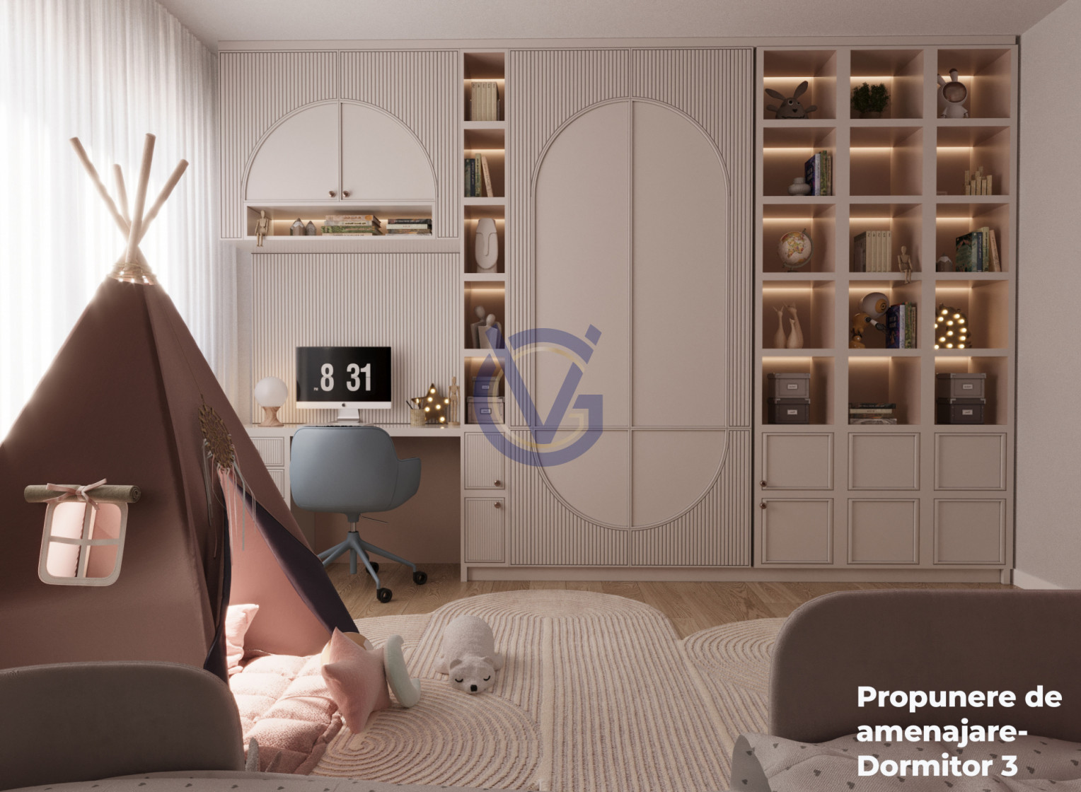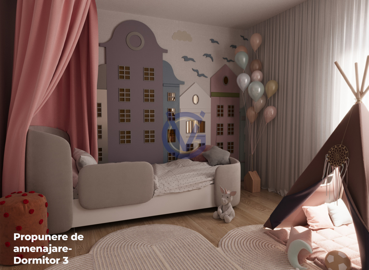 • Copiii au și ei intimitatea proprie, două dormitoare (13 si 16mp), cu baia lor (7mp) și terasa separată. Își pot vedea de propriile activități, fără să deranjeze restul familiei.